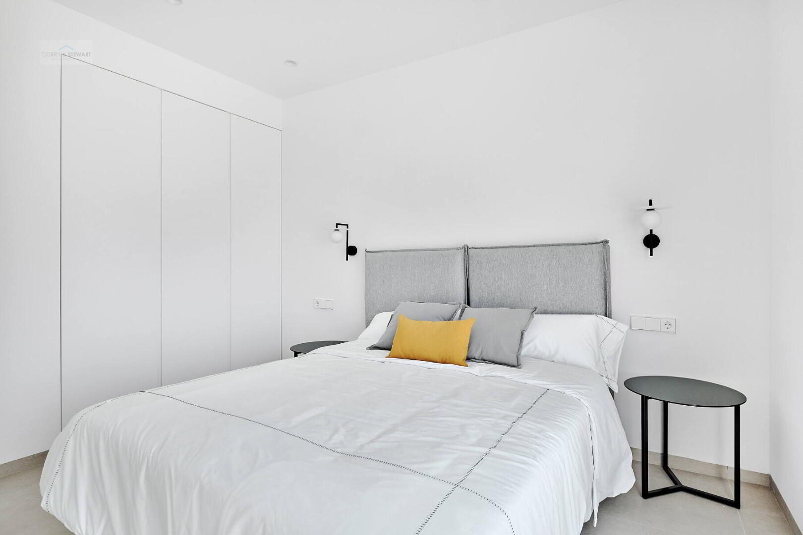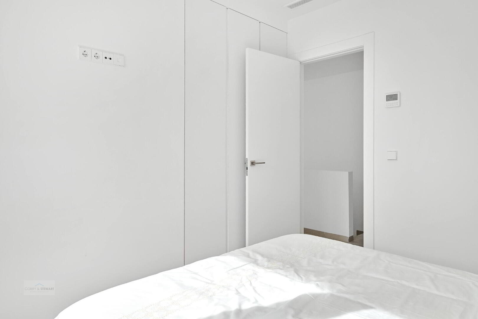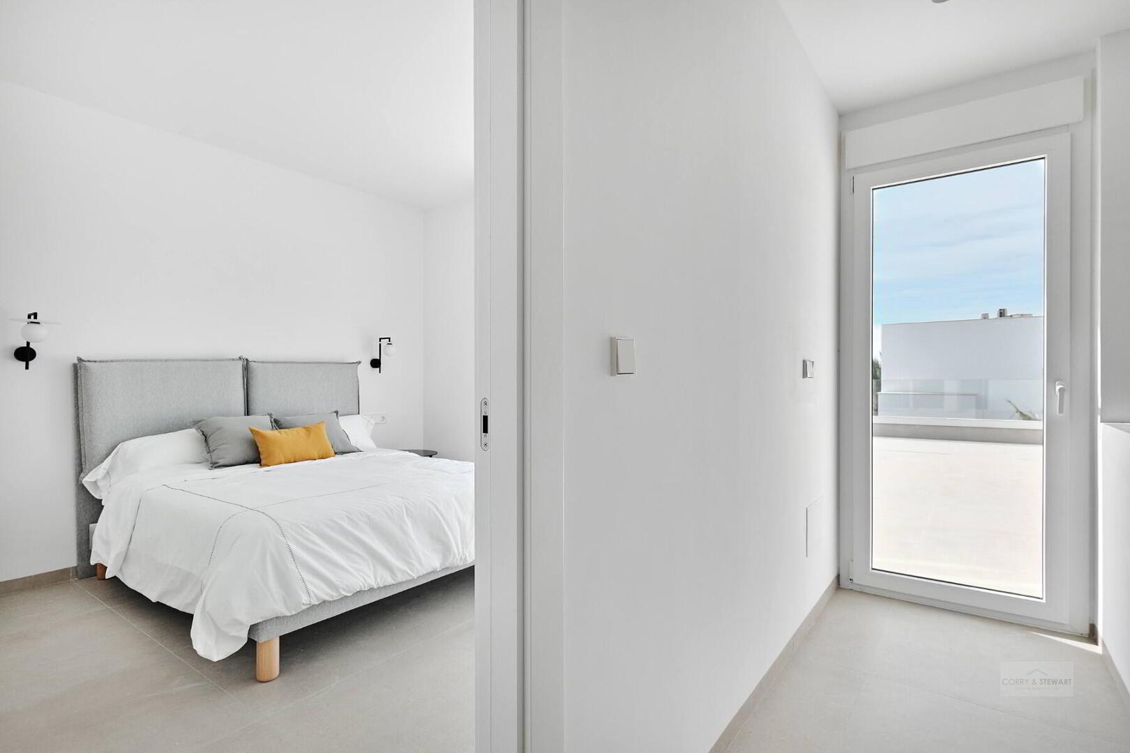 This particular model villa is over two levels and the interior layout comprises of an entrance hallway leading to the bright and spacious open plan lounge and dining area with large windows throughout creating plenty of natural light to flow through the property as well as opening onto the terrace and garden. Within the main living space is a fully fitted American style kitchen with centre island offering a choice of colours, there is a separate laundry room and guest toilet. The ground floor level also includes the impressive Primary suite with large bedroom, en-suite bathroom and walk in wardrobe / dressing area. The interior staircase leads you to the first floor level with a further two good sized double bedrooms and a separate guest bathroom. The first floor level boasts a 58m2 solarium with beautiful open views, perfect to enjoy the sun all day long. All villas come including ducted air conditioning, kitchen electrical appliances, underfloor heating in the bathrooms, built in wardrobes in all bedrooms, interior and exterior LED lighting, private swimming pool and private parking on the plot.